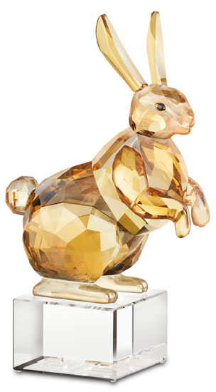 為慶祝2011年兔年的來臨,施華洛世奇以精致閃爍的仿水晶塑像描繪這種深具象征意義的動(dòng)物及其生肖同伴。 每年,施華洛世奇都會(huì)根據(jù)各生肖的特性推出一組三款的動(dòng)物作品,直至2012年,整個(gè)Chinese Zodiac系列作品全部登場(chǎng)。繼2009年推出的“虎”、“馬”及“狗”后,三款充滿喜悅及優(yōu)美特性的全新作品——“兔”、“羊”及“豬”將于2010年隆重登場(chǎng)。