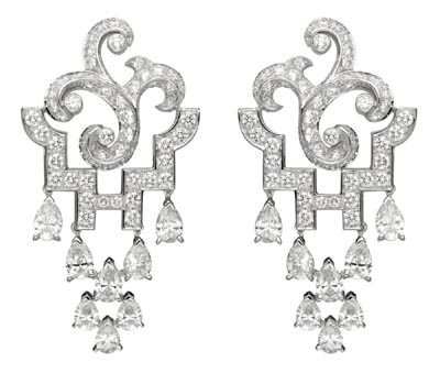 在這一以自然為主題的法式花園風格的高級珠寶系列中,Pergola項鏈從蔓藤中汲取靈感,祖母綠打造而成的珠飾串連成細致的蔓藤,隨著由鑲滿鉆石的飾釘鑲座組成的藤架攀爬,不對稱藤蔓設(shè)計,呈現(xiàn)出常春藤蔓相互交纏、彼此傾訴的美態(tài)。優(yōu)雅且饒富生命力。