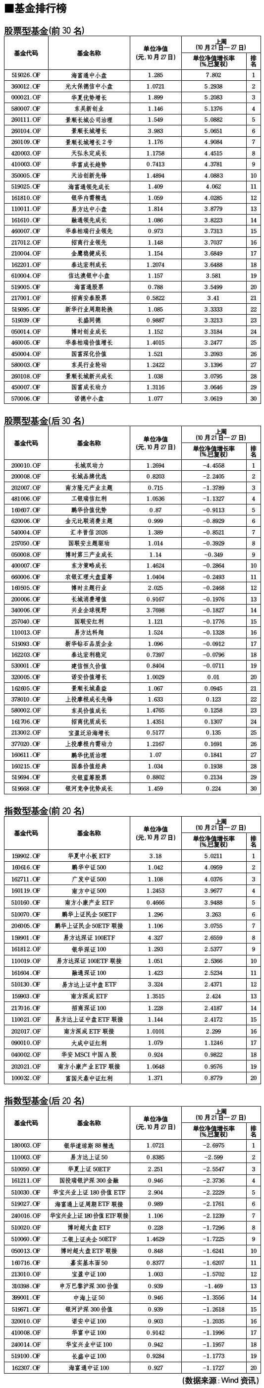股票型基金排行榜[2010-10-29]