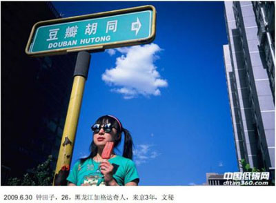 于是,從2009年6月1日開始到2010年5月31日,盧為薇和她的另外一個朋友每天都在北京拍一張照片。照片里面會有一個北京的路牌,當天空是藍色時,她們還會請一位路人戴上一副滑稽的墨鏡出鏡。
