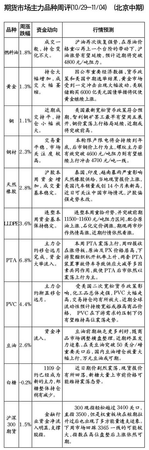 期貨市場主力品種周評[]10.22-10.28