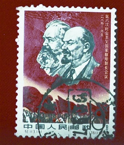 今年71歲的黃仕恒老先生,是一名興趣廣泛的收藏愛(ài)好者。這枚紅色的正版郵票是馬克思和列寧的頭像,面值為8分錢,下方“紀(jì)113·3—1[361]1965”,從郵票目錄上查到:這是第六次社會(huì)主義國(guó)家郵電部長(zhǎng)會(huì)議的紀(jì)念郵票,1965年6月21日發(fā)行,影寫(xiě)版,設(shè)計(jì):盧天驕。