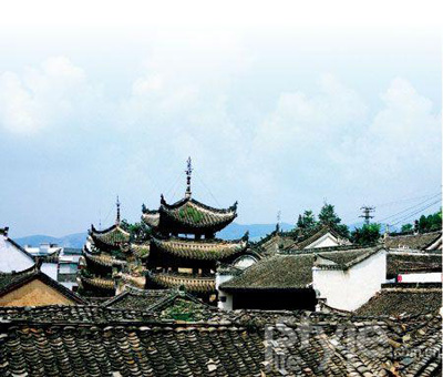 俯瞰小鎮(zhèn),屋角飛檐,層層疊疊,各不相同。