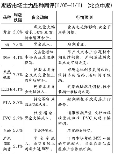 期貨市場主力品種周評[11.05-11.11]