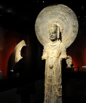 圖為山東博物館新館鎮(zhèn)館之寶之一、被譽(yù)為“東方維納斯”的蟬冠菩薩北魏佛教造像。