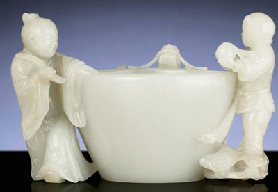 佳士得中國藝術(shù)拍品 清乾隆 白玉雙童耳洗