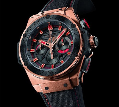 Gold獨特處就在于將玫瑰金的原始配方加入鉑金原料,永保玫瑰金表殼閃耀永恒的貴金屬光彩,而面盤則采用多層次的處理,十二點鐘方位Hublot與F1聯(lián)名的Logo下之面盤以胎紋式紋路處理,各性能視窗則仿照了F1賽車的儀表盤,以玫瑰金時標(biāo)與指針,搭配紅色長效型夜光涂料,明白宣示頂級制表與頂級賽車間空前輝煌的合作策略。除了F1官方時計限量表之外,Hublot近五年如傳奇般雀起的聲譽(yù),也獲得F1首肯,授權(quán)以F1義大利的傳奇賽道Monza為名,發(fā)表“F1Monza”大獎賽限量腕表。