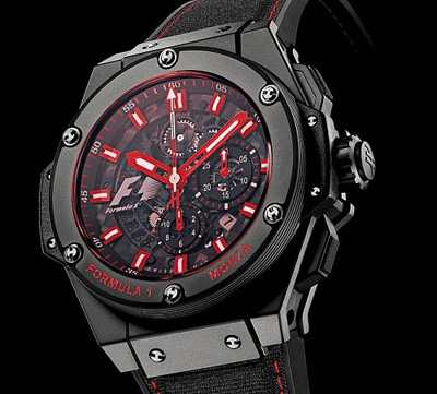 取得2010年F1官方授權(quán)的Hublot,再次成為第一個取得F1義大利傳奇賽道Monza授權(quán)的品牌,Hublot“F1Monza”以King Power