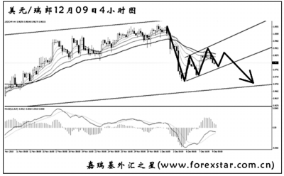 ▲美元兌瑞郎仍然運(yùn)行在日線圖的大旗形下跌中繼內(nèi)部,若這個(gè)旗形向下突破,則還將會(huì)有很深的一輪探底走勢。圖中匯價(jià)形成了一個(gè)小旗形通道,均線系統(tǒng)壓制排列,配合著中線的方向來看,美元兌瑞郎選擇繼續(xù)下行的概率很大,操作上以等待小時(shí)圖出現(xiàn)向下的主次節(jié)奏后做空為主。