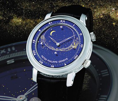 白金表殼,自動(dòng)上弦機(jī)芯,藍(lán)色星空表盤(pán),月相、月球運(yùn)行軌跡及天狼星顯示,同時(shí)可以顯示天狼星和月亮的中天時(shí)間——這就是百達(dá)翡麗Celestial