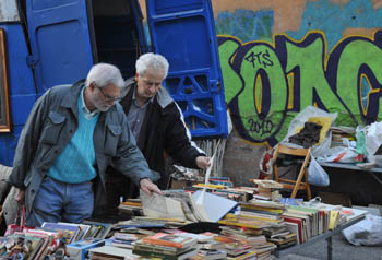 波爾泰塞城門“跳蚤市場”是羅馬最大的露天市場,只在每個(gè)星期天早上7時(shí)至下午2時(shí)開放,各色臨時(shí)攤位分布開來,占了好幾個(gè)居民區(qū),跨越十幾條街道。很少有人能說清這個(gè)“跳蚤市場”究竟有多大,只見肉眼能及的地方,全是白帳篷、鐵架子搭起來的攤位,據(jù)稱有4000個(gè)之多。