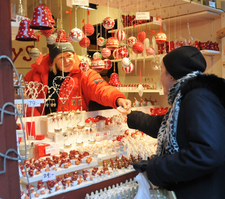 在瑞典首都斯德哥爾摩老城的“大廣場”上,有一個非常有名的圣誕市場,每年從11月22日開市,一直延續(xù)到平安夜前一天的12月23日。這個瑞典最古老的圣誕市場已有數(shù)百年歷史,至今仍然保持著中世紀風(fēng)格。這里不僅周邊環(huán)境傳統(tǒng)氣息非常濃郁,而且銷售的均為傳統(tǒng)的圣誕節(jié)用品,其中許多用品已在瑞典流傳了數(shù)百年。每年圣誕節(jié)來臨之前,不僅前來購物的當?shù)鼐用窠j(luò)繹不絕,還有不少游客慕名而來領(lǐng)略這個古老市場的風(fēng)采。記者 吳平/斯德哥爾摩報道