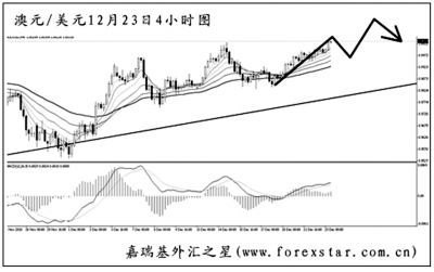 ▲澳元兌美元在日線圖上升趨勢(shì)線的依托下節(jié)節(jié)攀高,目前再度挑戰(zhàn)1.0000的整數(shù)關(guān)卡阻力。由于右肩走的過(guò)大,所以澳元形成頭肩頂形態(tài)的概率已然不高。短線應(yīng)本著繼續(xù)做多澳元為主思路,匯價(jià)有望再度挑戰(zhàn)11月初創(chuàng)出的1.0180高點(diǎn)阻力。
