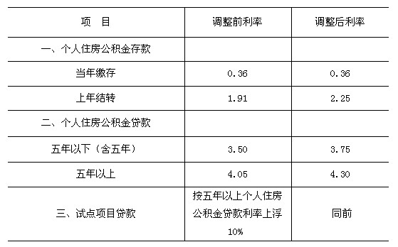 二、從2010年12月26日起,上調(diào)個(gè)人住房公積金貸款利率。五年期以下(含五年)及五年期以上個(gè)人住房公積金貸款利率均上調(diào)0.25個(gè)百分點(diǎn)。五年期以下(含五年)從3.50%調(diào)整為3.75%,五年期以上從4.05%調(diào)整為4.30%。