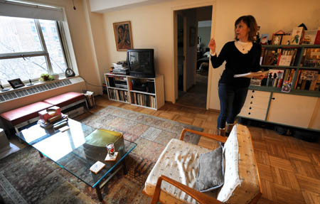 1月7日,紐約曼哈頓斯泰弗森特社區(qū)的居民芭芭拉·比嫩費(fèi)爾德坐在客廳的窗邊觀看社區(qū)內(nèi)的雪景。芭芭拉·比嫩費(fèi)爾德和丈夫已經(jīng)在斯泰弗森特社區(qū)租住了近12年,租住的是一套一居室的公寓,總面積約55平方米。這樣一套公寓在曼哈頓每月租金一般都在3000美元以上,而芭芭拉夫婦倆只需付大約1500美元。