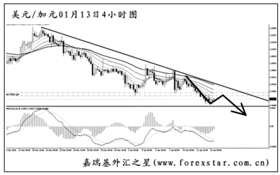 ▲美元兌加元經(jīng)過了長時(shí)間的震蕩和不懈的努力,終于跌破了日線圖去年4月下旬的低點(diǎn)0.9930,下方空間被進(jìn)一步打開。圖中的下降趨勢(shì)線壓制匯價(jià),主客觀方向均下看。短線以做空為主思路,后市有望展開更為猛烈的下行趨勢(shì)。