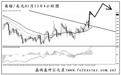▲歐元兌美元小幅創(chuàng)出日線圖新低之后未能加速下行,短線反彈的斜率較大。圖中下降趨勢(shì)線為日線圖形成,由于均線系統(tǒng)已被升破,后市歐元有望直接挑戰(zhàn)趨勢(shì)線的阻力作用。短線存在一波做多機(jī)會(huì),但穩(wěn)健投資者還是等待歐元上調(diào)到位后繼續(xù)順勢(shì)做空為好。