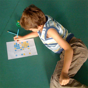 不過(guò),在孩子們看來(lái),這更像是他們與大黃蜂之間的一場(chǎng)游戲。洛托為他們提供了“游戲工具”——一個(gè)模擬花朵的有機(jī)玻璃面板。面板上有4個(gè)方陣,每個(gè)方陣中有16個(gè)圓圈。這些圓圈可以改變顏色來(lái)模擬花朵,圓圈中間有凹槽,用于盛放模擬花蜜的糖水。