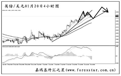 歐元兌美元短線(xiàn)的上升趨勢(shì)保持完好,圖中趨勢(shì)線(xiàn)和均線(xiàn)系統(tǒng)依托匯價(jià),目前歐元正在考驗(yàn)去年12月中旬的高點(diǎn)1.3500一線(xiàn)阻力,突破后將結(jié)束區(qū)間震蕩的走勢(shì),打開(kāi)進(jìn)一步的上行空間。短線(xiàn)雖然發(fā)生了角度明顯的MACD頂背離信號(hào),但在有效跌破趨勢(shì)線(xiàn)之前,繼續(xù)保持歐元看漲的思路。