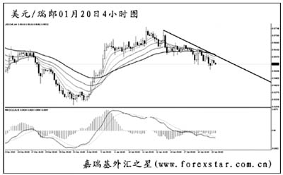 美元兌瑞郎此前小幅創(chuàng)出新高之后轉(zhuǎn)為下落節(jié)奏,但中途強(qiáng)動(dòng)能交替頻繁,匯價(jià)走勢(shì)震蕩凌亂。圖中均線(xiàn)系統(tǒng)被反復(fù)穿越,客觀趨勢(shì)橫盤(pán)。由于目前的下跌力度并不強(qiáng)勁,很難預(yù)期美元兌瑞郎會(huì)直接下攻前方低點(diǎn)的支撐0.9300一線(xiàn)。短線(xiàn)以看空為主,待趨勢(shì)線(xiàn)升破后再及時(shí)調(diào)整思路。
