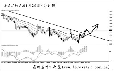 美元兌加元小幅創(chuàng)出新低之后反身上行,力度強(qiáng)勁,將圖中下降趨勢(shì)線(xiàn)強(qiáng)力升破,目前匯價(jià)正在考驗(yàn)此前被跌破的日線(xiàn)圖前方低點(diǎn)阻力0.9930,若成功站穩(wěn)其上,美元兌加元有望展開(kāi)一波中線(xiàn)的漲勢(shì)。短線(xiàn)首先關(guān)注道氏理論高點(diǎn)0.9975的阻力,升破后將結(jié)束此前的下跌趨勢(shì)。