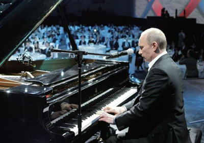 在圣彼得堡慈善晚會上,主持人邀請普京上臺表演,普京說:“如同大多數(shù)人一樣,我不會唱歌跳舞!比欢,他走到臺上一架鋼琴前,用那強健的十指以及略顯尖薄的聲線自彈自唱起來。當(dāng)然,世人無不稱給力,無不感嘆當(dāng)年克格勃培訓(xùn)系統(tǒng)的水平之高。