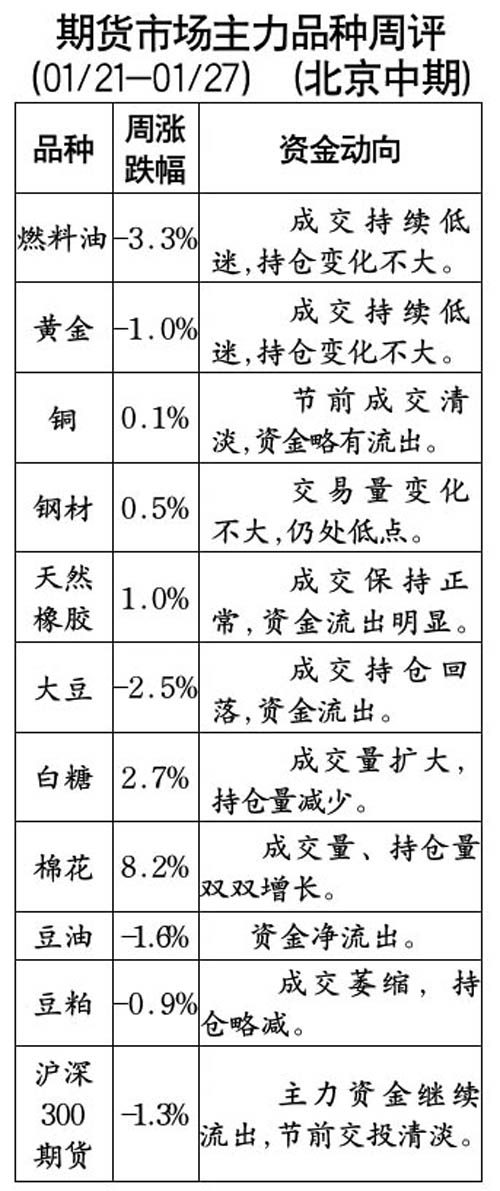 期貨市場(chǎng)主力品種周評(píng)[1.21-1.27]