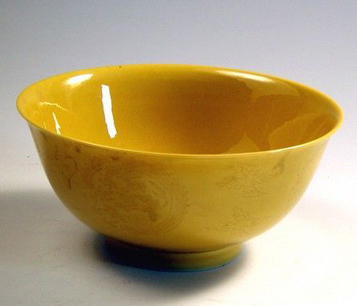 | 清乾隆款黃釉團(tuán)龍紋碗 |