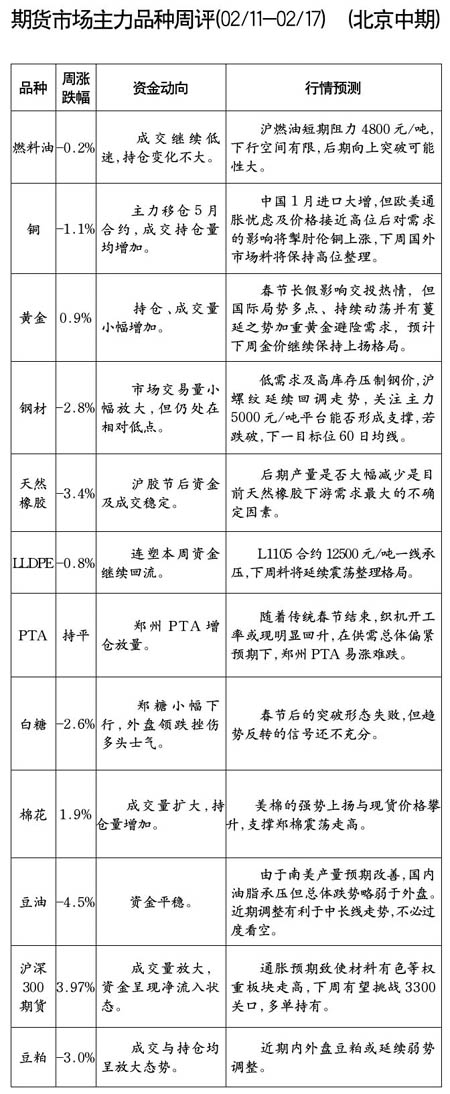 期貨市場主力品種周評[02.11-02.17]