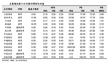 另外目前低估值的天津港也具備較高的安全邊際,其對應2011年預測市盈率分別只有14倍和16倍。其中天津港2011年集團計劃以現(xiàn)金收購方式將30萬噸原油碼頭注入A股。而北港池三期碼頭2009-2011年盈利增長很快,也會對公司業(yè)績構成支撐。