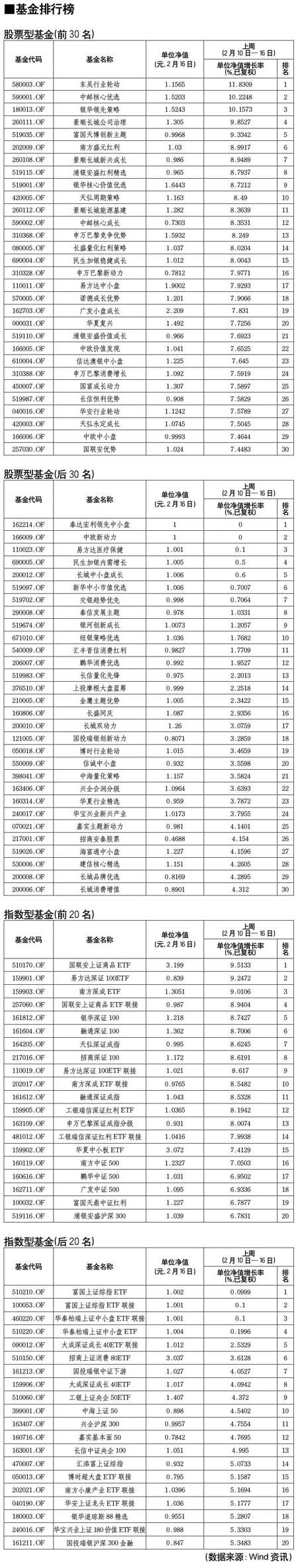 股票型基金排行榜[2011-02-18]
