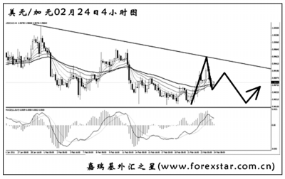 ▲美元兌加元在跌破了去年4月的低點(diǎn)0.9925一線之后繼續(xù)震蕩下行,從4小時(shí)圖上看,匯價(jià)走勢(shì)雜亂無(wú)序。圖中下降趨勢(shì)線為日線圖構(gòu)筑,對(duì)匯價(jià)形成了很好的壓制作用。按目前的趨勢(shì)判斷,美元兌加元將繼續(xù)以震蕩走弱為主,何時(shí)能夠突破下降趨勢(shì)線成為匯價(jià)反轉(zhuǎn)的先決條件。