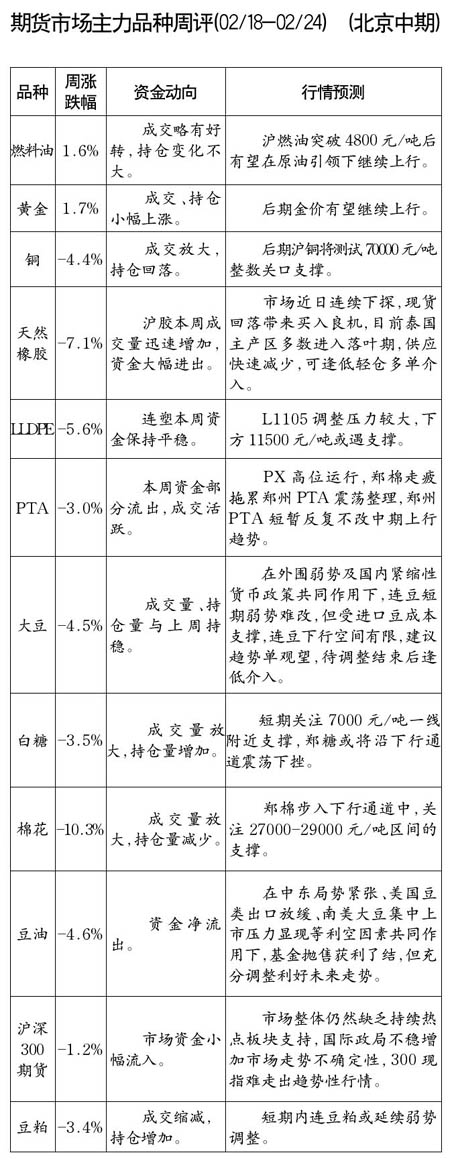 期貨市場(chǎng)主力品種周評(píng)[02.018-2.24]