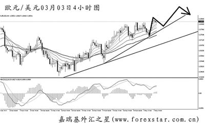 ▲歐元兌美元正在考驗(yàn)前方高點(diǎn)1.3860的阻力,若成功升破,后市的上升空間將進(jìn)一步被打開(kāi)。圖中有兩條上升趨勢(shì)線,下方為日線圖形成,上方為4小時(shí)圖中畫(huà)出,由此可見(jiàn),歐元短線的上漲力度有所加強(qiáng)。預(yù)計(jì)匯價(jià)有望向趨勢(shì)線一帶發(fā)起回調(diào),但后市繼續(xù)沖高的希望很大。