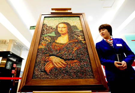 3月7日,一幅《蒙娜麗莎》寶石作品在沈陽一商場(chǎng)展出,吸引了眾多市民的目光。這幅作品由收藏者用30年時(shí)間,耗用10萬多克拉各種顏色的寶石原石,并聘請(qǐng)歐洲工藝大師歷時(shí)五年打造而成,價(jià)值不菲。新華社發(fā)