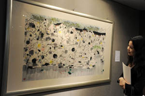 媒體預(yù)展上展示的吳冠中1980年所作《獅子林》,估價(jià)500萬(wàn)至800萬(wàn)港元。記者 宋振平/攝 |