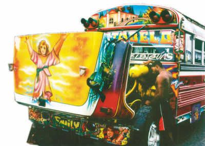 在中美洲的街道上,最驚艷的不是美女,而是當(dāng)?shù)匚孱伭陌褪,一輛輛飛馳著的大巴士,簡直就是活動(dòng)著的藝術(shù)品。