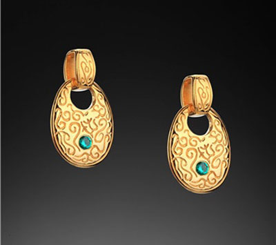 作品金屬采用銀鍍金雕刻唐草紋設(shè)計(jì),中間鑲嵌彩色鋯石,猶如浩瀚銀河里的兩顆星星,是母親永遠(yuǎn)的關(guān)注焦點(diǎn),
