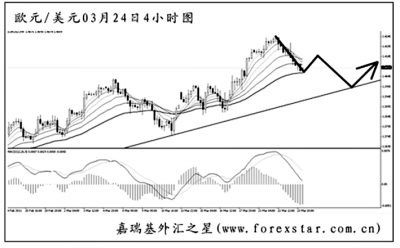 ▲歐元兌美元經過了一段上行加速,接近了前方高點1.4280的阻力,但匯價未能突破此位,短線展開了力度不弱的下跌調整。日線圖中的上升趨勢線對匯價的依托作用完好,歐元直接跌破此線的希望不大。且道氏理論顯著低點在1.3750,在此位置被刺破前,中線上需繼續(xù)保持看漲歐元的思路。