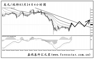 ▲美元兌瑞郎的震蕩盤整已經持續(xù)了一周多的時間,由于下方已無任何支撐可以托住匯價的下跌,做空空間十分廣闊。從圖中分析,美元兌瑞郎目前接近了均線系統和趨勢線的雙重壓制位,若不迅速展開新一輪下跌,則最終升破此阻力區(qū)域的概率較大。做空需謹慎。
