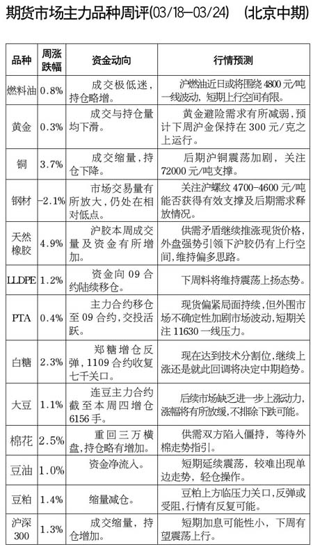 期貨市場(chǎng)主力品種周評(píng)[03.18-03.24]