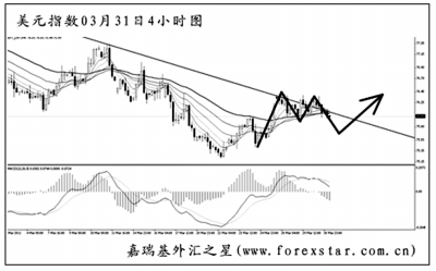 美元指數(shù)繼續(xù)考驗(yàn)日線圖下降趨勢線的阻力作用,由于此前美元小幅跌破了75.60的前方低點(diǎn)支撐,此后強(qiáng)力上行,有形成日線圖2B反彈走勢的可能。日線圖均線系統(tǒng)的壓制作用完好,道氏理論顯著高點(diǎn)的阻力在77.30,升破后方可結(jié)束階段性的下跌。短線美元指數(shù)還有一波下調(diào),但后市向上沖破趨勢線的概率較大。