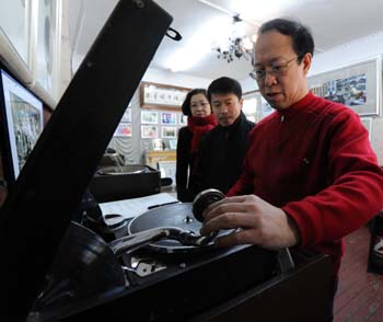 目前,衣軍的藏品都存放在他租來(lái)的收藏室里。他添置了一些現(xiàn)代化的設(shè)備:電腦、打印機(jī)、掃描儀,并建立了數(shù)據(jù)庫(kù),對(duì)藏品進(jìn)行分類管理。衣軍說(shuō),他現(xiàn)在想為唱片和留聲機(jī)找一個(gè)大型展館,然后分門(mén)別類地?cái)[放在那里,作為文化教育場(chǎng)館,長(zhǎng)期面向市民開(kāi)放。他說(shuō),唱片的收藏旨在保存歷史,同時(shí)追求歷史的真實(shí),無(wú)論是公藏還是私藏,對(duì)人類都無(wú)疑是一種貢獻(xiàn)。