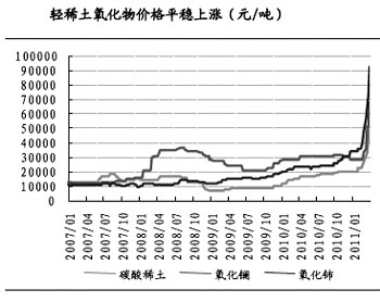 國聯(lián)證券發(fā)布的報告稱,盡管國家統(tǒng)一調(diào)整稀土礦原礦資源稅稅額標準有助于通過增加開采成本遏制濫采賤賣,但由于調(diào)整后仍從量征收,而非從價征收,如果今后稀土價格進一步上漲,從量方式仍不能實現(xiàn)有效控制。目前稀土價格近年來幾乎沒有停止過漲勢。