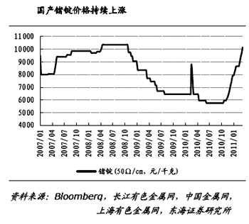 產(chǎn)品結(jié)構(gòu)持續(xù)優(yōu)化提升云南鍺業(yè)整體盈利能力,13N高純鍺仍是主要超預期因素。中投證券認為,2010年鍺價是歷史底部也將是未來的底部,下游需求領(lǐng)域尤其安全性更高的太陽能領(lǐng)域可能出現(xiàn)超預期需求,鍺還屬于優(yōu)勢資源品種,對鍺行業(yè)持續(xù)看好。