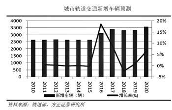 “十二五”規(guī)劃給鐵路等一系列軌道交通建設(shè)帶來(lái)巨大的投資機(jī)會(huì)。國(guó)家“十二五”規(guī)劃綱要明確提出“加快鐵路客運(yùn)專(zhuān)線、區(qū)際干線、煤運(yùn)通道建設(shè),發(fā)展高速鐵路,形成快速客運(yùn)網(wǎng),強(qiáng)化重載貨運(yùn)網(wǎng)?茖W(xué)制定城市軌道交通技術(shù)路線,規(guī)范建設(shè)標(biāo)準(zhǔn),有序推進(jìn)輕軌、地鐵、有軌電車(chē)等城市軌道交通網(wǎng)絡(luò)建設(shè)”。隨著國(guó)家《中長(zhǎng)期鐵路網(wǎng)規(guī)劃》的逐步實(shí)施,我國(guó)鐵路路網(wǎng)規(guī)模將進(jìn)一步擴(kuò)大。