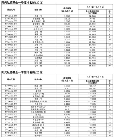 私募排排網(wǎng)統(tǒng)計(jì)的去年陽光私募年度收益前十名,今年一季度的開局并不十分理想。Wind統(tǒng)計(jì)顯示,一季度只有3只取得了正收益。常士衫掌管的“世通1期”保持著12.35%的回報(bào)率,華寶1號收益率達(dá)到8.90%,澤熙瑞金1號也有6.82%的回報(bào)率。而“從容醫(yī)療1期”損失最慘重,一季度回報(bào)率為-12.70%;另外西域投資旗下的“光華59”回報(bào)率為-11.22%,理成資產(chǎn)旗下“理成風(fēng)景2號”收益率為-9.28%。