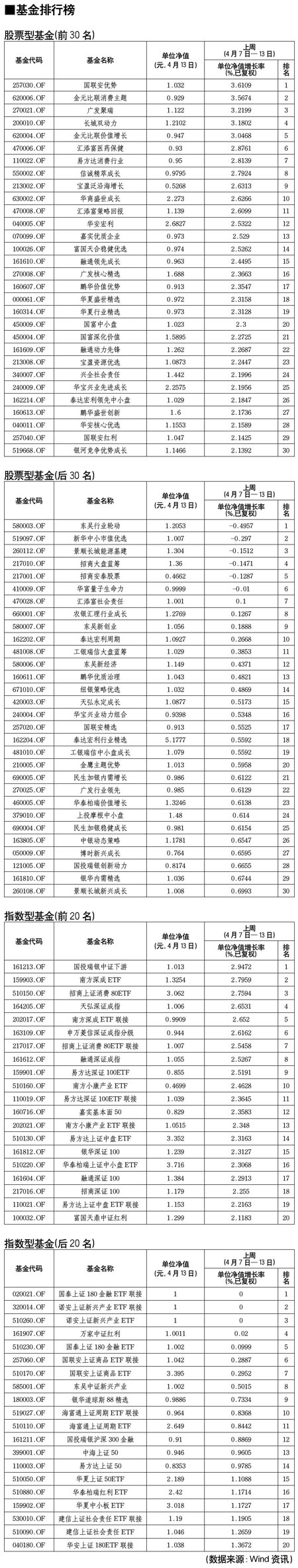 股票型基金排行榜[2011-04-15]