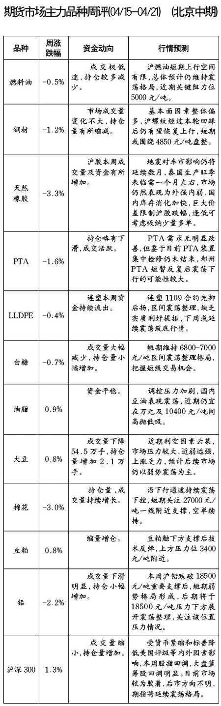 期貨市場(chǎng)主力品種周評(píng)[04.15-04.21]