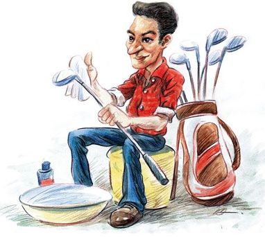 所有人都有過天氣轉(zhuǎn)暖,把皮衣上蠟打光放入儲衣柜的經(jīng)歷,其實球桿也需要精心地呵護一下。所有球桿中鐵桿部分需要花的時間相對較多,每支鐵桿桿面溝槽的清理非常重要,每場球下來溝槽里很容易積攢下泥沙和碎草,即使是在練習(xí)場,溝槽里也會積攢下很多練習(xí)球的表皮,雖然球童都會進行清理,但信別人畢竟是不可靠的,這些雜質(zhì)對溝槽的影響相當(dāng)大,尤其對特殊鐵桿,畢竟特殊鐵桿是靠溝槽吃飯的。